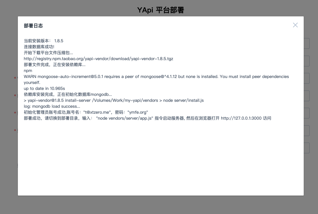 $ sudo npm install -g yapi-cli --registry https://registry.npm.taobao.org