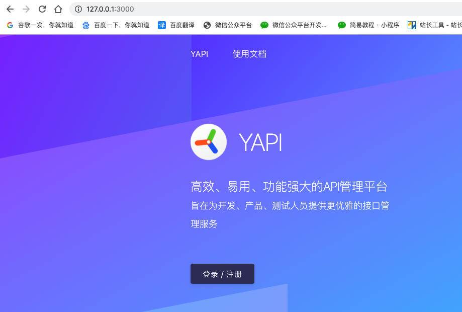 按上边配置完,你已经可以使用yapi的功能了。每次需要使用的时候,你都需要访问http://127.0.0.1:3000/来使用。看看别人家,都用内网域名